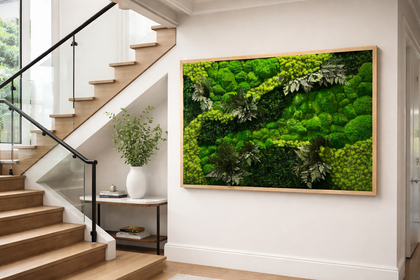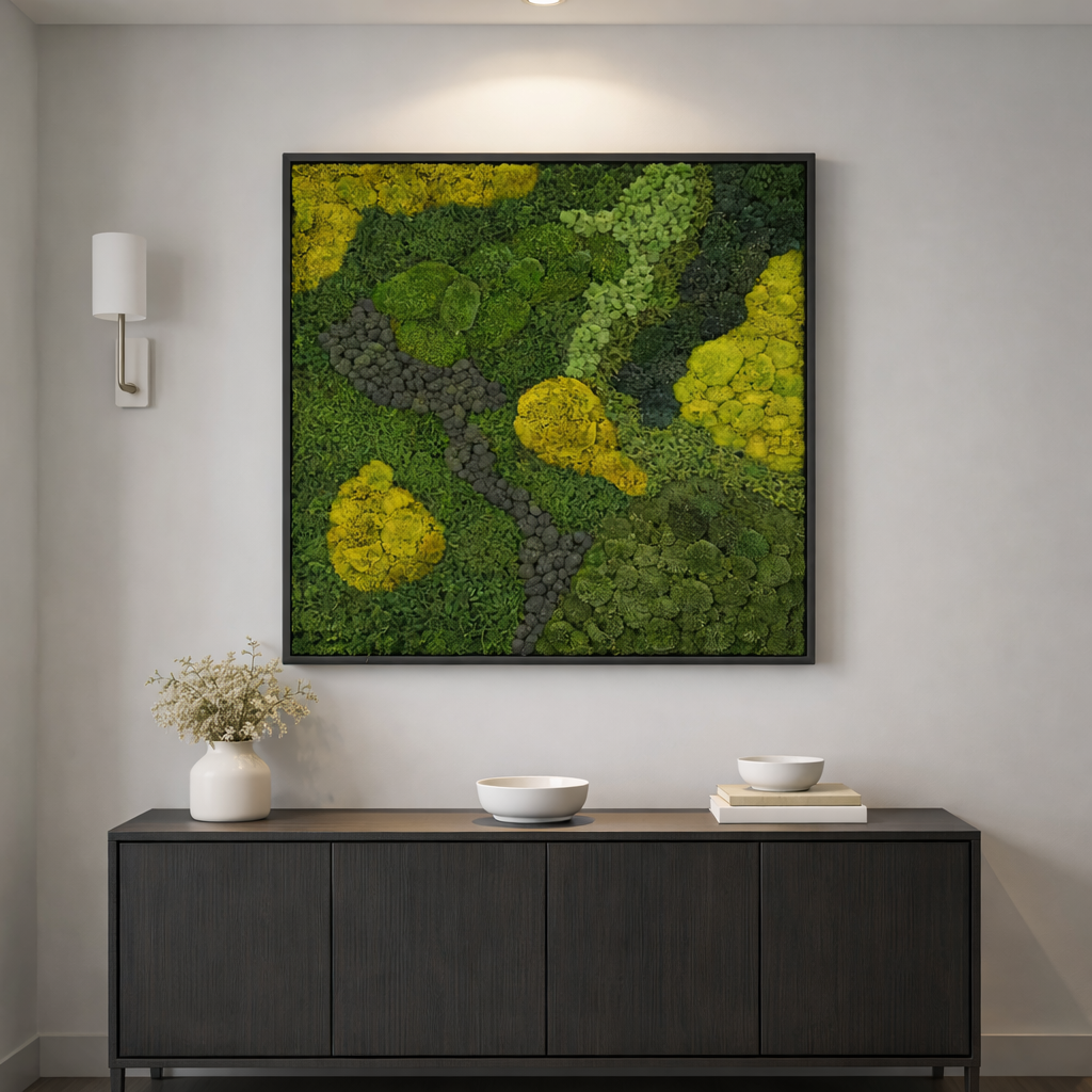 The Moss Shop specializes in handcrafted preserved moss wall art, moss frames, and custom moss wall installations designed for homes and commercial interiors.