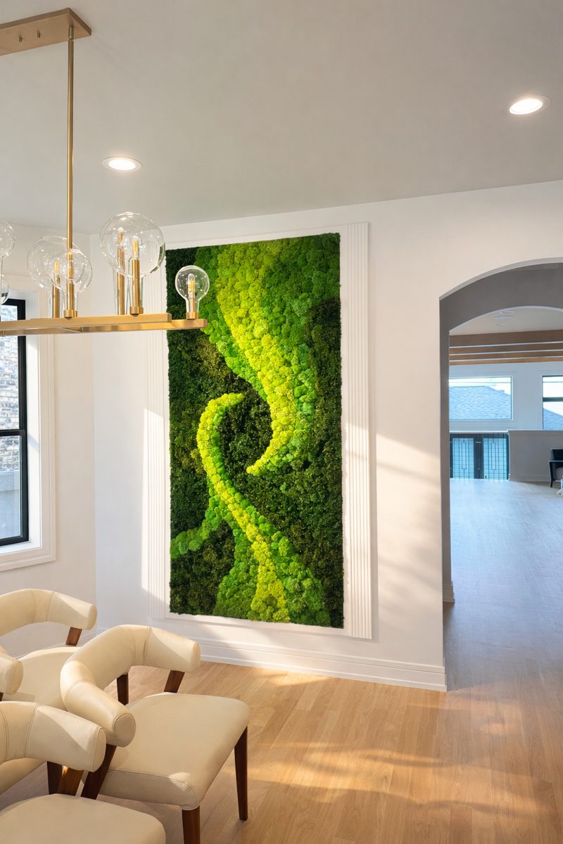I did a lot of research on preserved moss companies before making a final decision. My goal was trying to marry excellent quality while being cost effective. Not always an easy task to accomplish. After finding The Moss Shop I was certain they were the best choice. I placed my order and reached out to Johnny, one of the partners, and immediately I was even more convinced my vision would be executed to perfection. Beyond perfection! It came beautifully package in order to keep the pieces safe. It had not toxic odor to it as some cheaper imitations often do. Lastly, the quality was exceptional. Our office has received countless compliments on the 3 Panel “Artistic Moss Installation.” I am ordering another piece for sure. It is worth it! Johnny was so professional and helpful. A thousand thank yous to “The Moss Shop” and Johnny for making our dental office an even more aesthetically beautiful space.