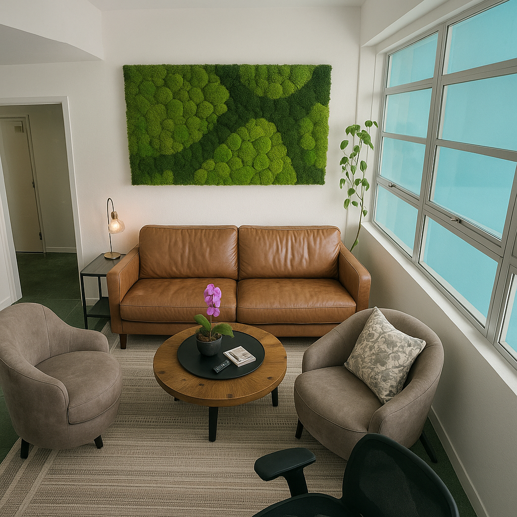 Acoustic & Calming – Moss softens echoes and enhances focus — perfect for offices, studios, and open spaces.