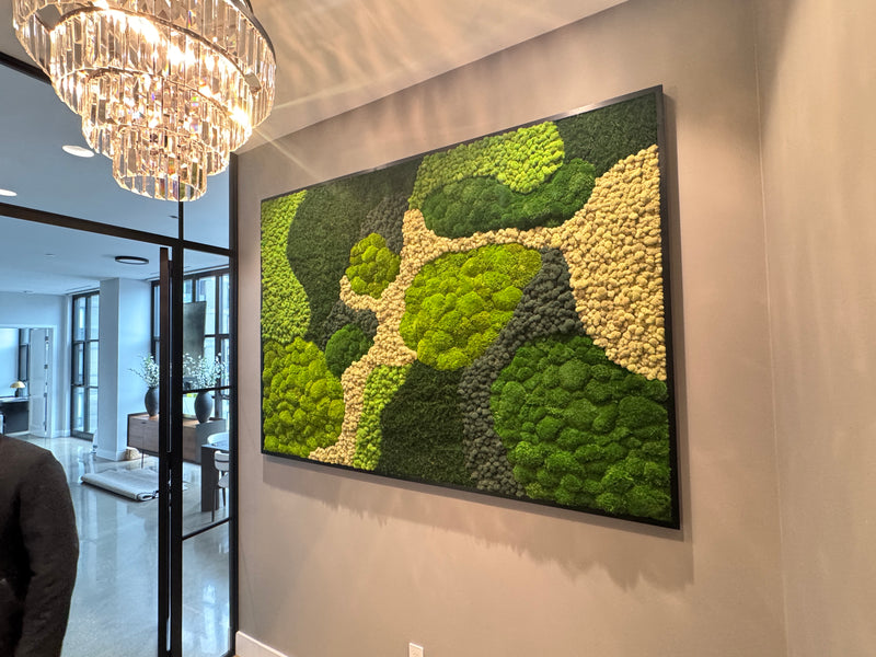 Explore how custom moss art, framed moss wall art, branded moss walls, and moss logos are designed and installed for homes and commercial spaces.