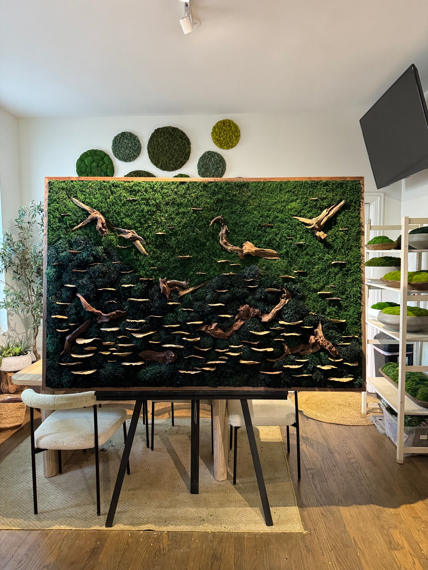 Our moss artwork is commonly installed in homes, offices, restaurants, hotels, and commercial interiors looking to introduce natural design elements without the maintenance of living plants.