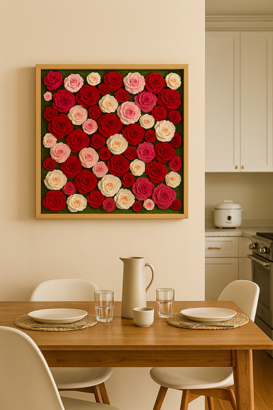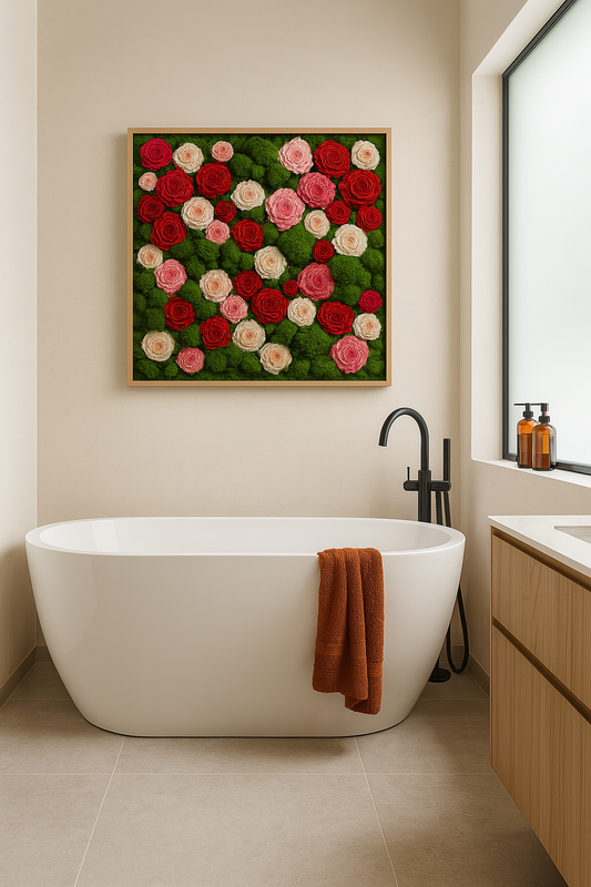 18x18" Linear Roses Moss Art Frame: Ready to Ship