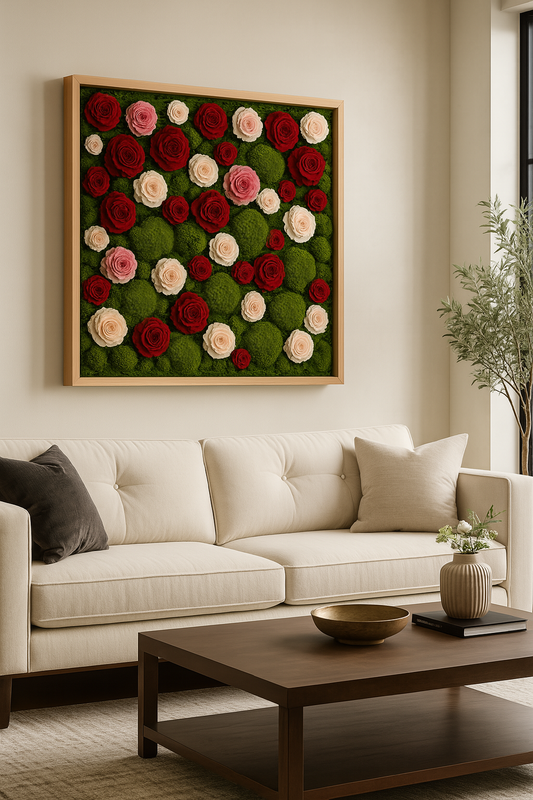 Discover the complete range of handcrafted preserved moss art from The Moss Shop. Our full product line includes everything from organic moss frames and rustic driftwood pieces to minimalist designs, floral accents, succulent frames, and large-scale moss walls. Every piece is designed with care, blending natural beauty and timeless craftsmanship to bring greenery indoors—without the need for maintenance.