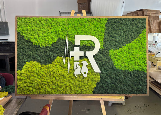 Custom Logo (Mixed Mosses) with CNC Lettering, Moss Art Frame