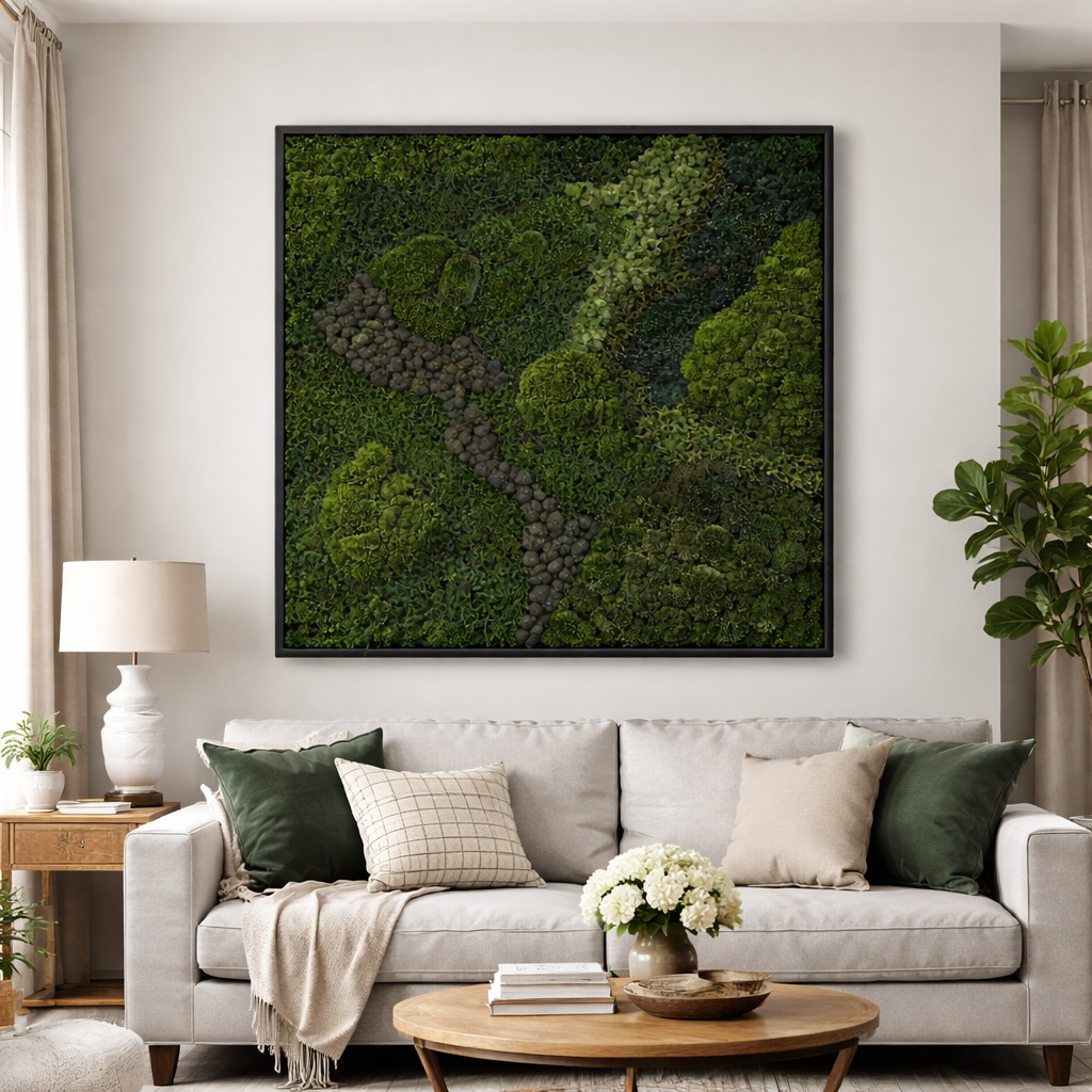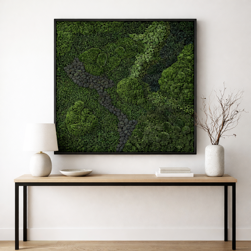 Preserved moss artwork is custom-made, not mass-produced. Each frame is built, finished, and filled with moss by hand.