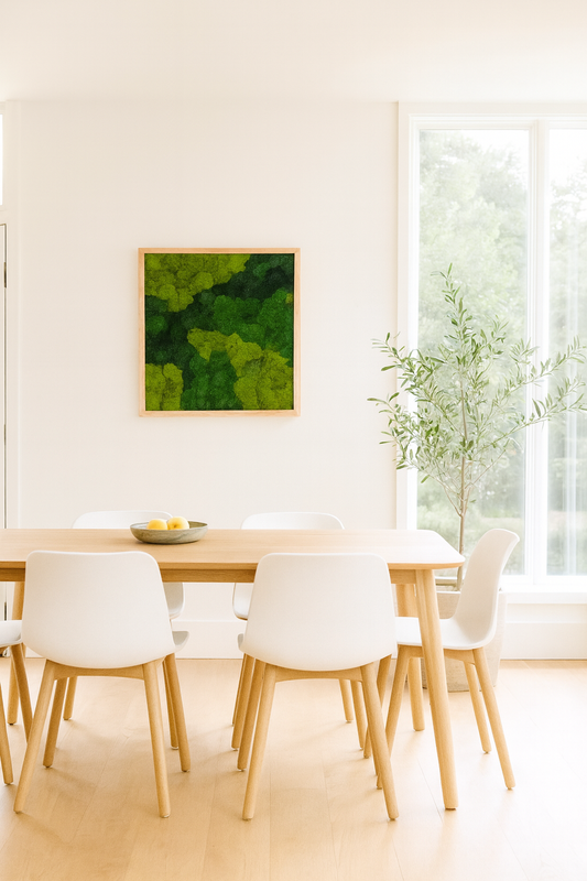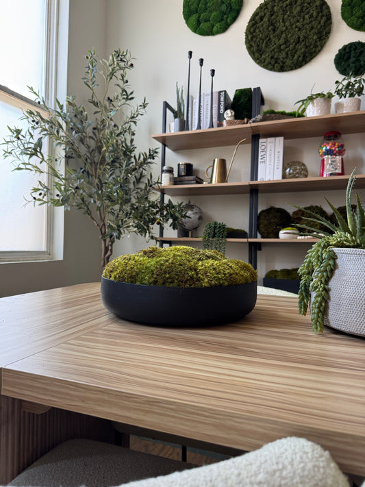 All items are available for free U.S. shipping or local pickup at our Chicago studio. Each piece is made with the same premium preserved moss and solid hardwood craftsmanship that defines The Moss Shop—just ready to enjoy sooner.