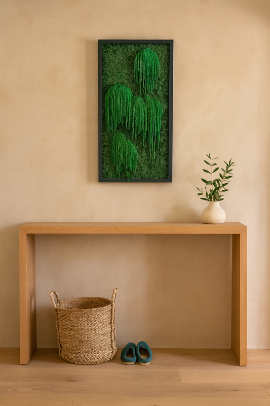 36x18" Willow Strands Moss Art Frame (Vertical): Ready to Ship