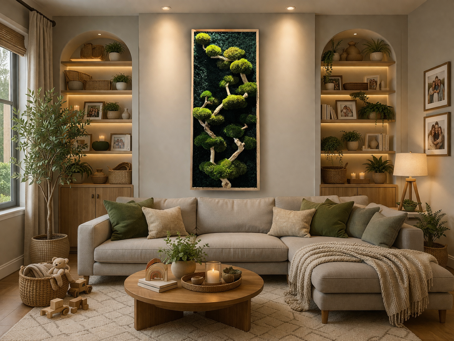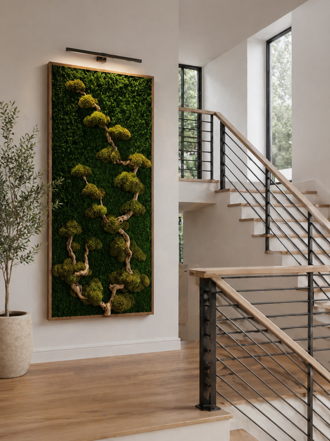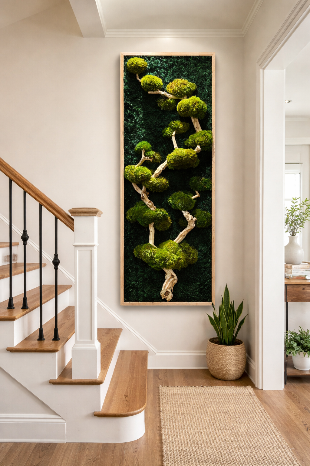 Preserved moss is especially well-suited for low-light spaces where live plants would struggle.