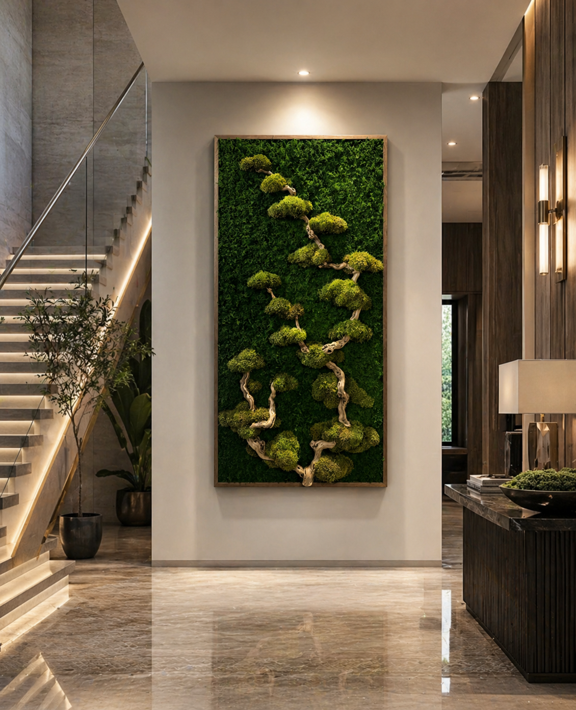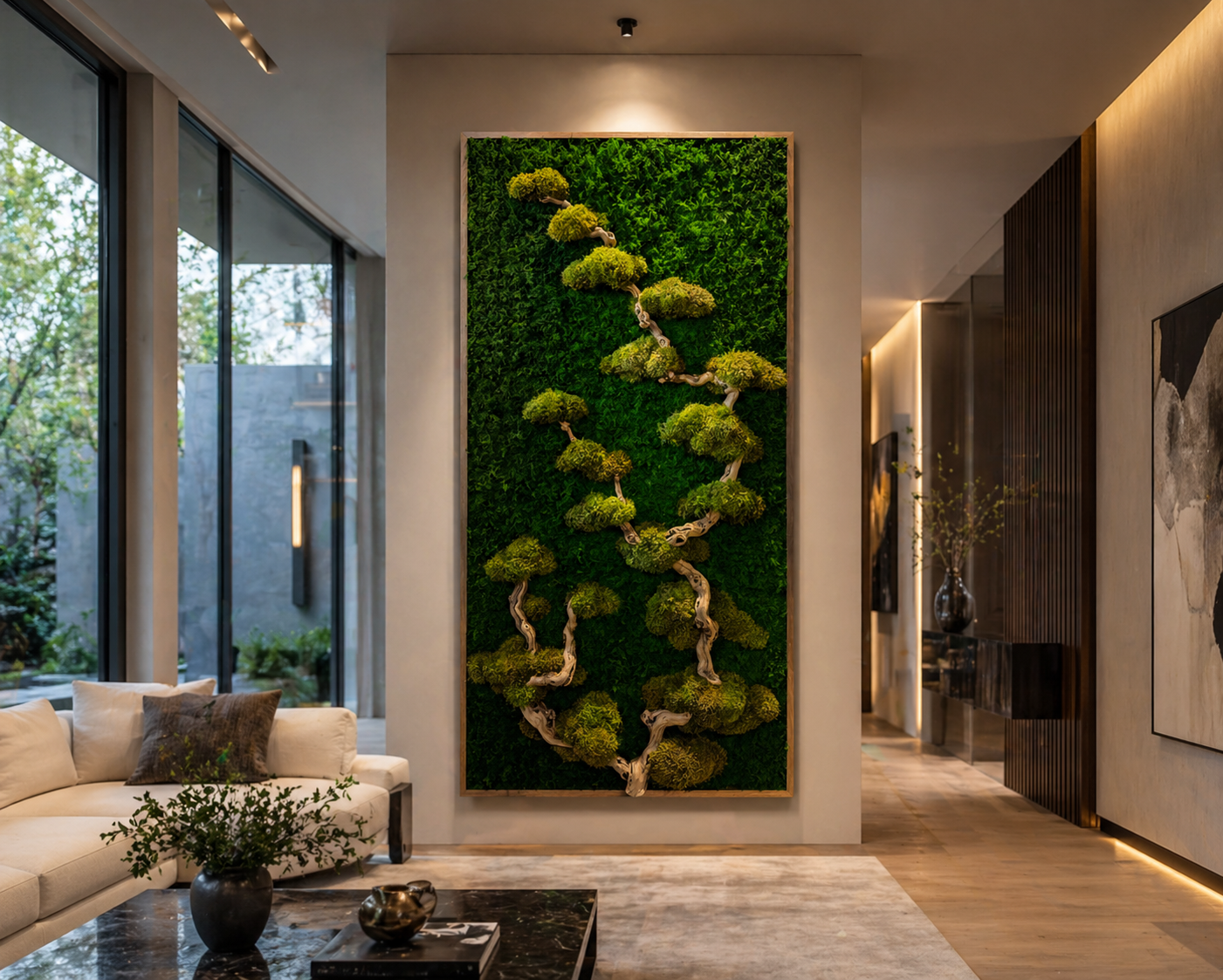 Our moss artwork is commonly installed in homes, offices, restaurants, hotels, and commercial interiors looking to introduce natural design elements without the maintenance of living plants.