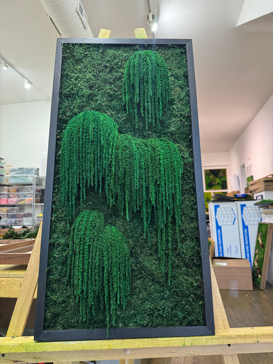 Bring meaning and creativity to your space with our collection of custom themes and symbols moss frames. This unique moss wall art is handcrafted to showcase recognizable shapes and icons, from peace signs and clovers to custom designs that reflect your personal expression. Each piece combines the natural beauty of preserved moss with cultural significance, creating artwork that is both organic and deeply personal.