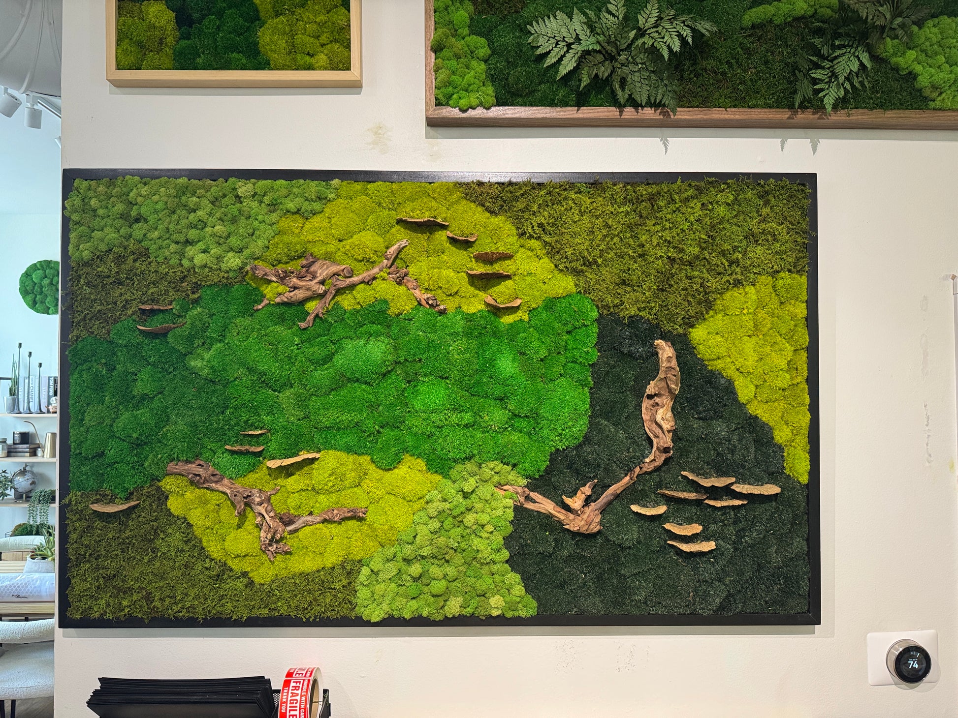 One handcrafted frame per order, featuring a natural composition of preserved moss, ferns, driftwood, and other botanicals—each piece unique. Lead time: 30–45 days.