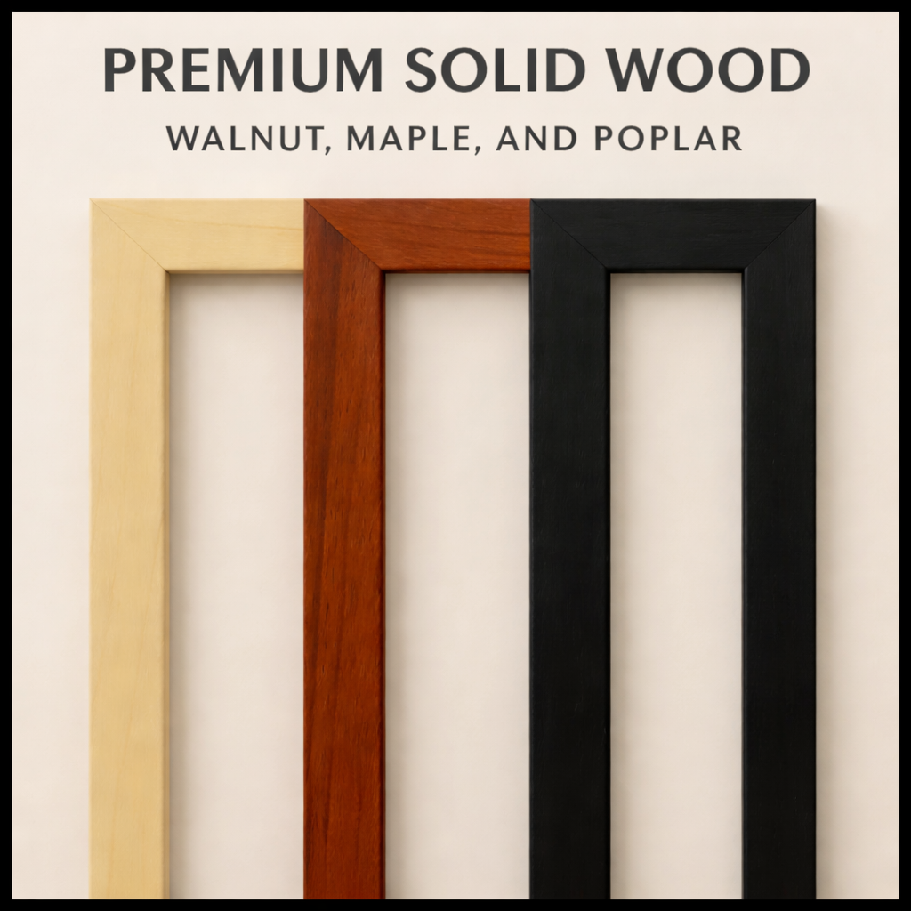 Available in standard and custom sizes. Contact us for bespoke dimensions, orientations, or frame color requests.