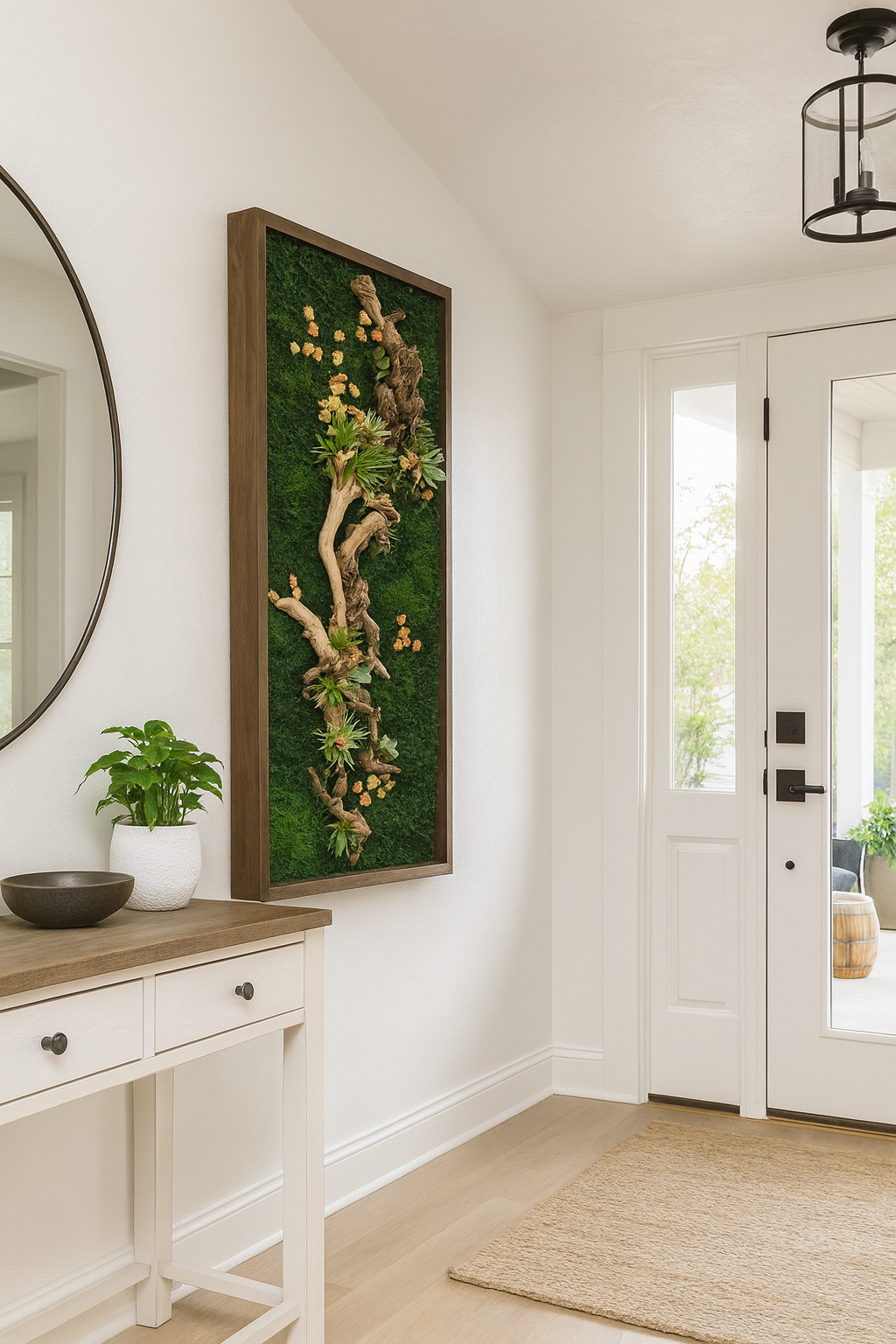 One handcrafted frame per order, featuring a natural composition of preserved moss, ferns, driftwood, and other botanicals—each piece unique. Lead time: 30–45 days.