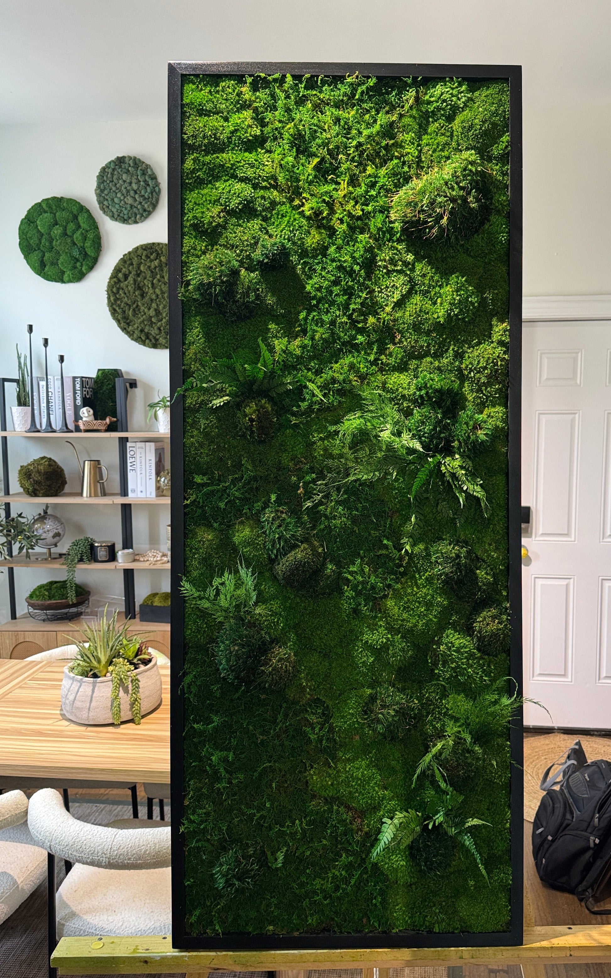 One handcrafted frame per order, featuring a natural composition of preserved moss, ferns, driftwood, and other botanicals—each piece unique. Lead time: 30–45 days.