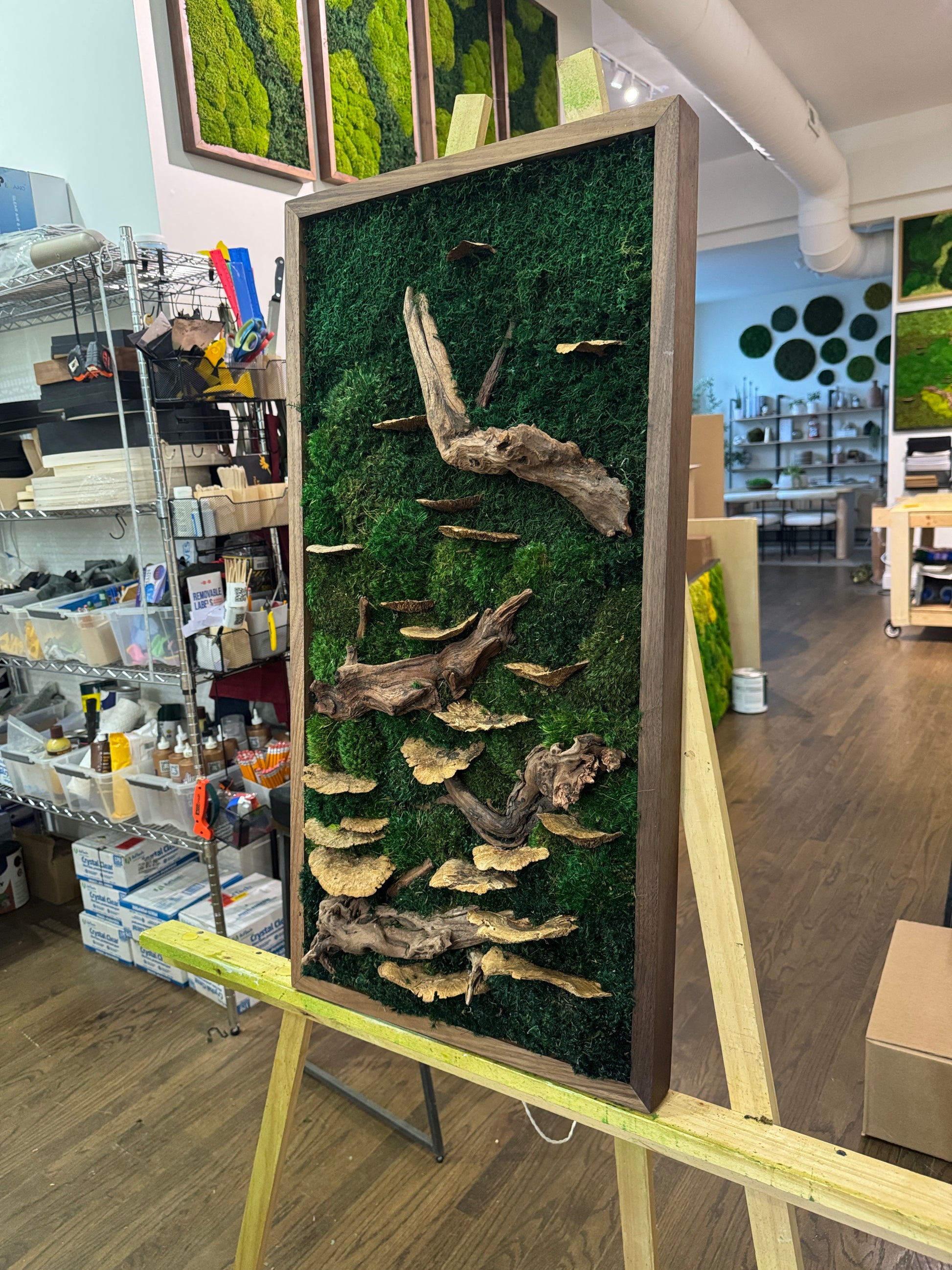 One handcrafted frame per order, featuring a natural composition of preserved moss, ferns, driftwood, and other botanicals—each piece unique. Lead time: 30–45 days.