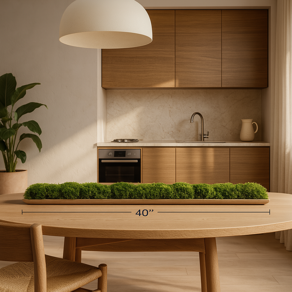 Our moss bowl combines the sleekness of metal with the textural beauty of moss, creating a statement piece that blends contemporary style with the timeless appeal of nature.